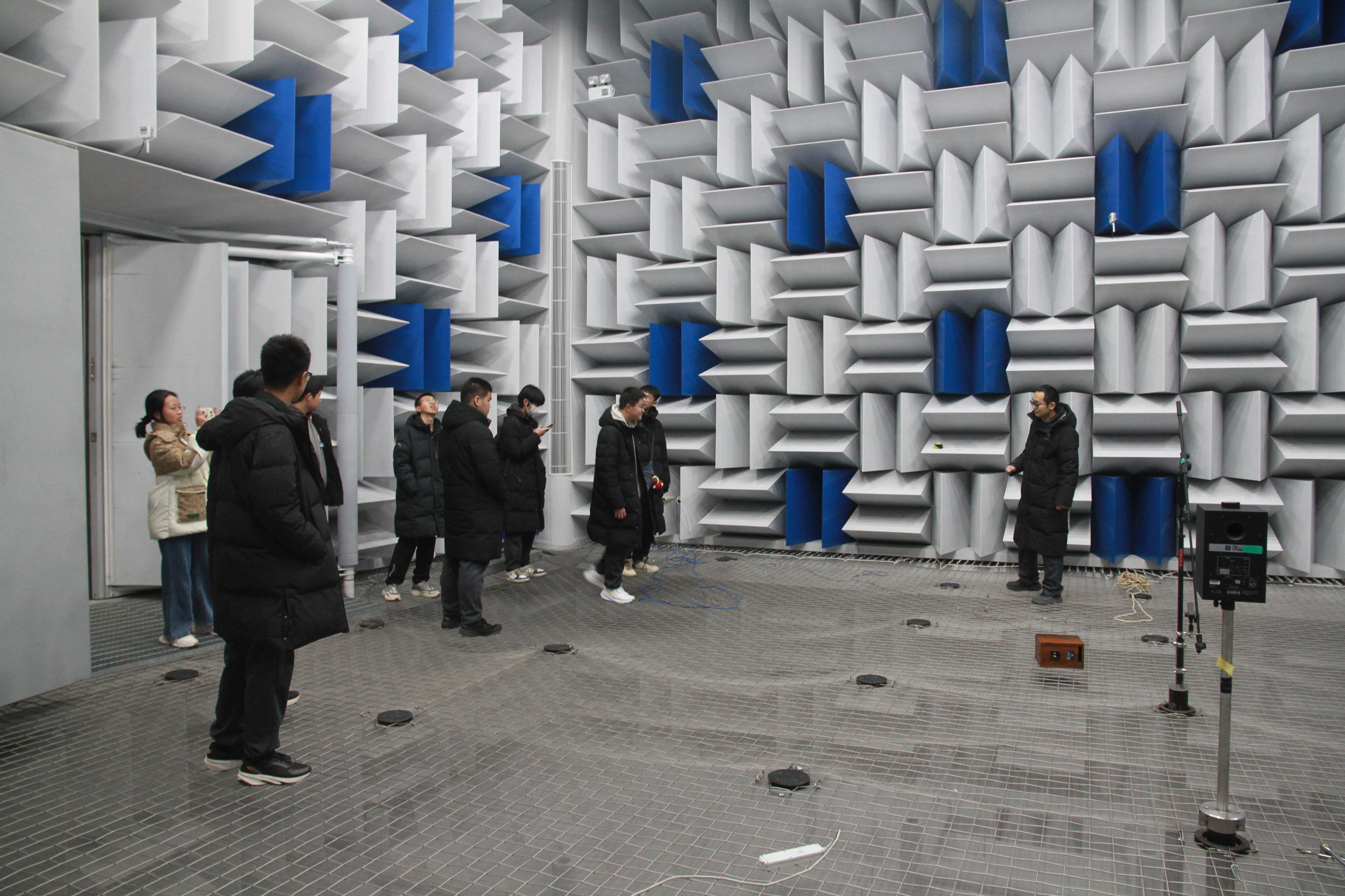 在水声学实验室,同学们了解了声波探测水中物体的工作原理以及如何利用消声水池模拟海洋环境开展水声试验,体会到了水声设备在海洋资源探测中的重要性。在空气声学实验室,同学们参观了全消声室、半消声室以及混响室,结合空气声学在日常生活中的应用实例,加深了对声波在空气中传播特性的理解,激发了同学们探索声学知识的学习热情。