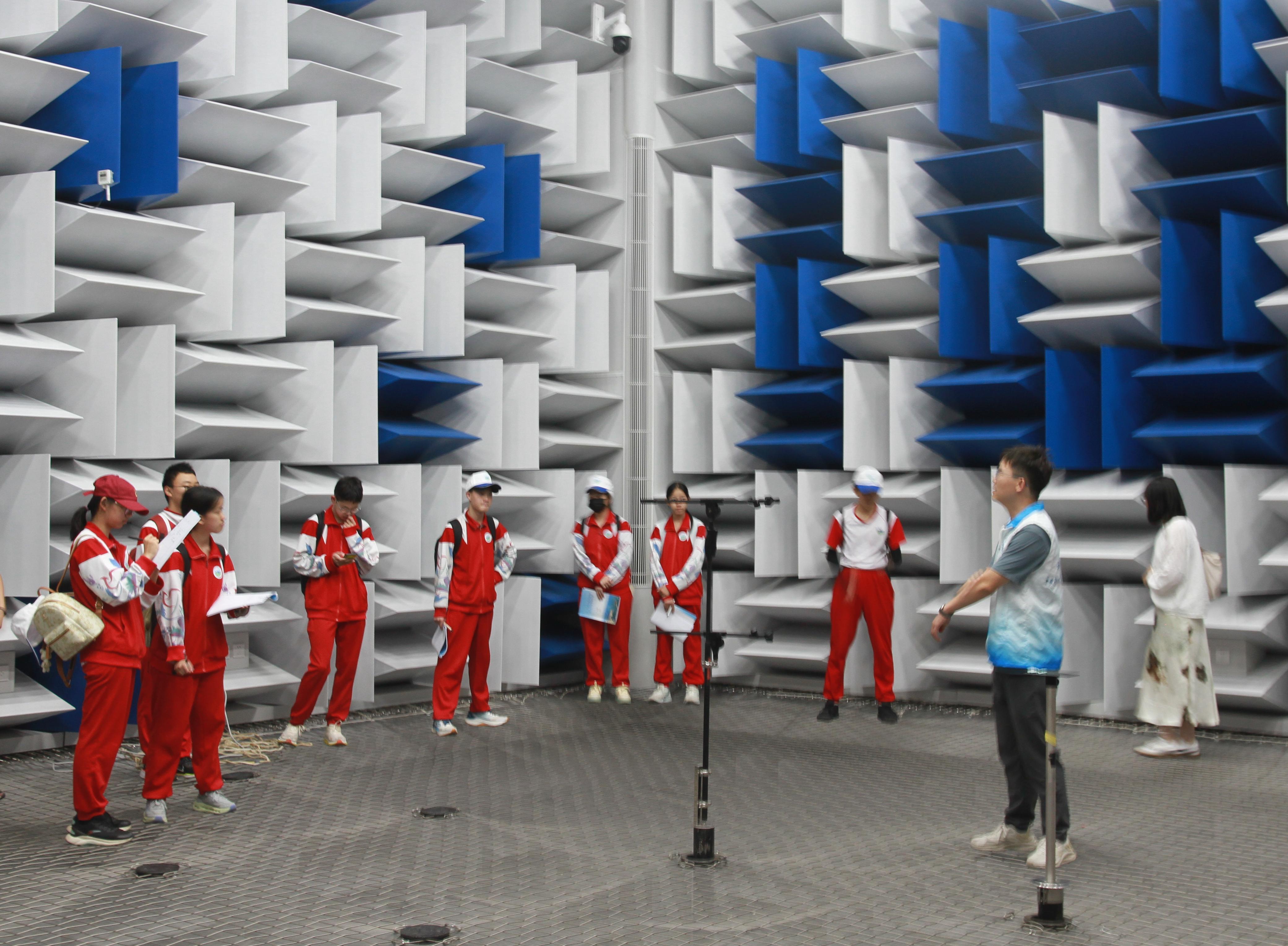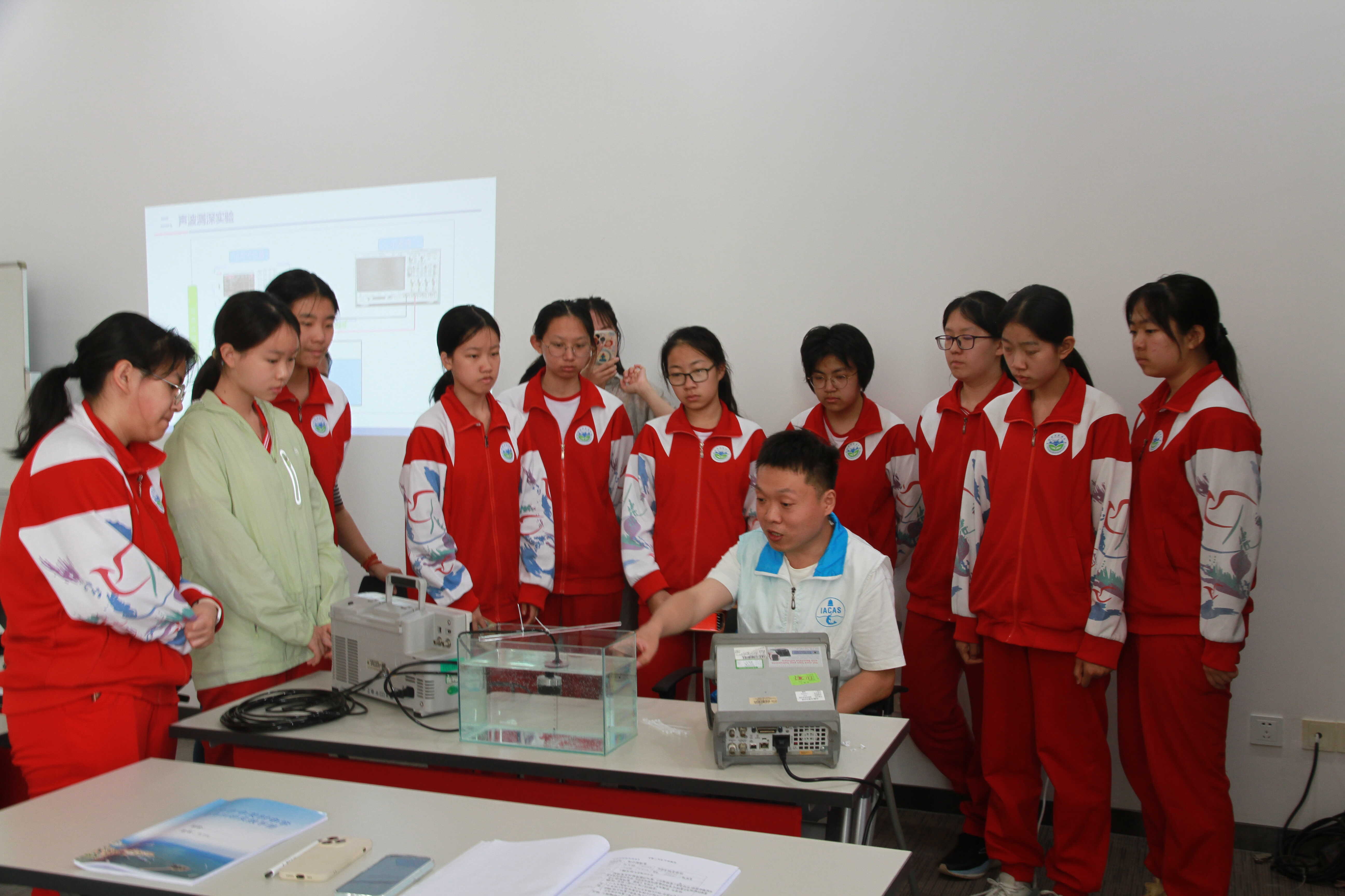 北海站科普志愿者首先生动开讲《走进声学》科普课,并引导学生实地参观水声学与空气声学实验室,帮助大家系统了解声学基础知识、应用领域及实验环境。随后,同学们分组体验了《探索声音衰减规律》、《声音驻波“现身”》、《隔音材料探秘》、《声呐测深》、《换能器制作》等特色实践课程。讲师们生动细致讲解相关的声学知识和实验原理,同学们积极踊跃动手实践。课后,学生们分组制作PPT进行分享,通过模拟课程答辩和讲师提问指导的方式,对所学课程进行深入巩固。通过本次实践课程,同学们有效掌握了声音衰减规律、材料隔声、驻波形成机理、声呐测距应用、换能器工作原理等知识要点,显著提升了科学探索兴趣,也能深刻体会到科研工作所需的一丝不苟与亲自动手的精神。